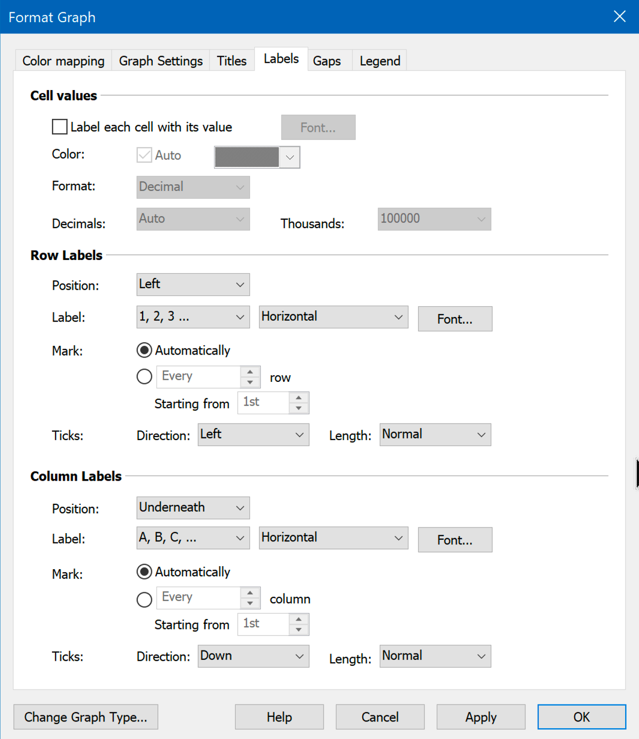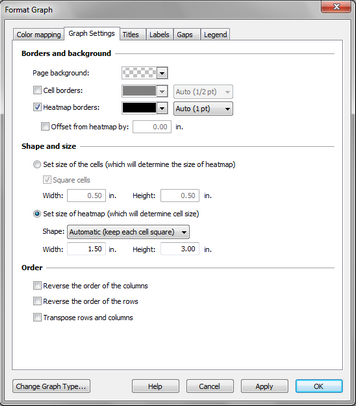 当您打开自动图形(或选择“新建”,基于现有数据创建图形)时,“新建图形”对话框会打开。选择“热图”选项卡,然后做出关于您想要创建的热图类型的基本选择。