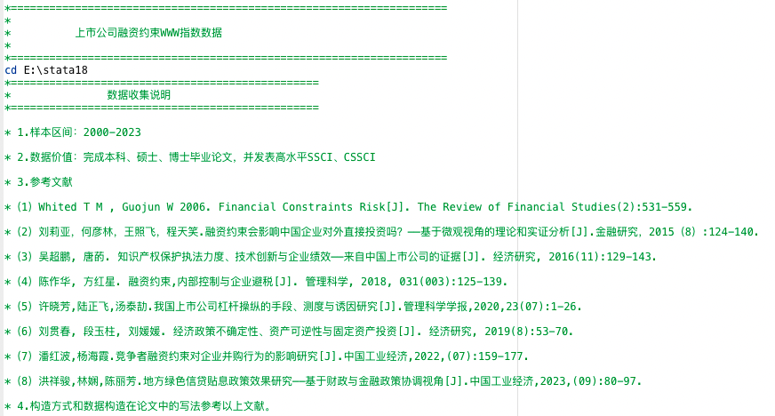 融资约束作为企业金融、公司治理等前沿研究领域的核心议题,在学术界备受关注。WW指数作为国际公认的融资约束衡量指标之一,被国内外众多高水平学术研究采用,并在《经济研究》《管理世界》《中国工业经济》《Journal of Financial Economics》《Review of Financial Studies》等顶级期刊上得到广泛应用。