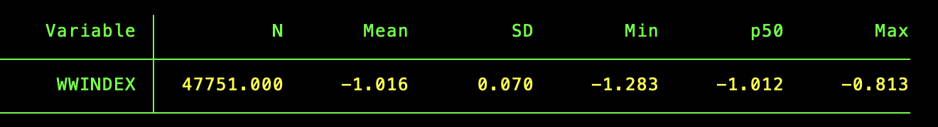 WWINDEX=-0.091*CF-0.062*DIVPOS+0.021*TLTD-0.044*LNTA+0.102*ISG-0.035*SG