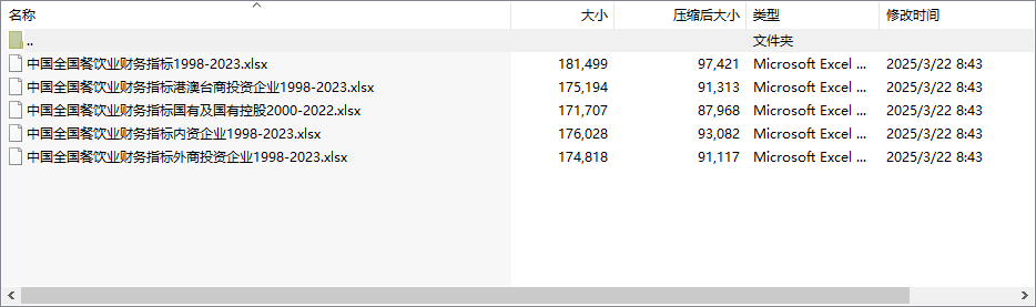 中国全国餐饮业财务指标内资企业国有及国有控股港澳台外商投资企业1998-2023数据