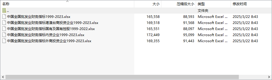 中国全国批发业财务指标内资企业港澳台商外商投资企业外资1999-2023国有及国有控股等