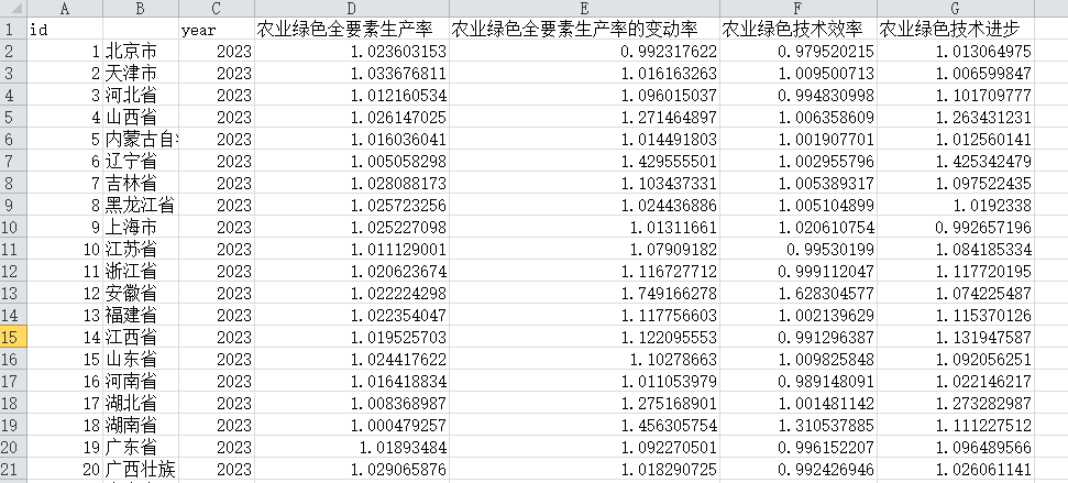 1.资料名称:2023-2011年中国省级农业绿色全要素生产率