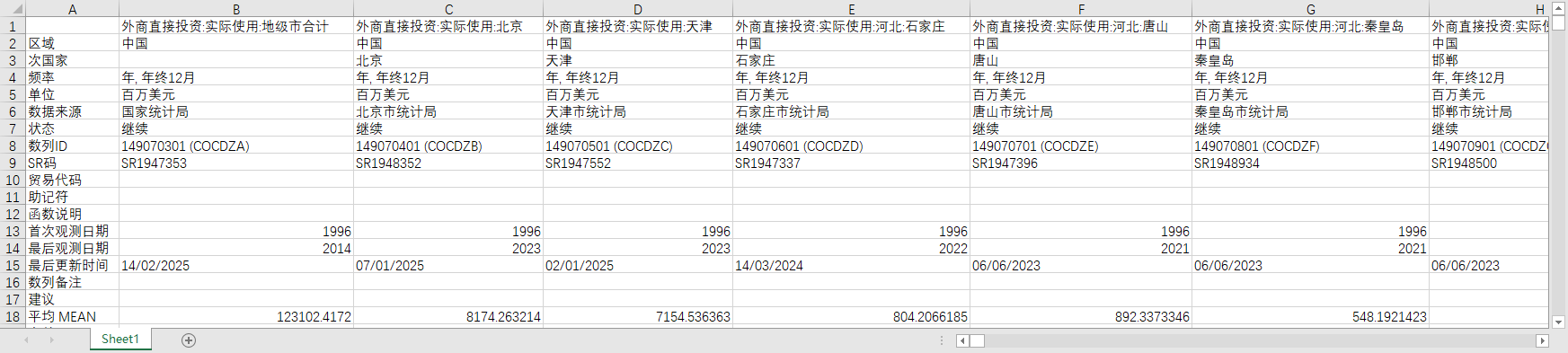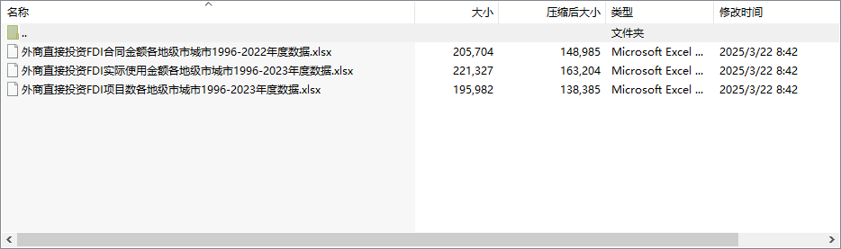 外商直接投资FDI合同金额各地级市城市1996-2022年度数据