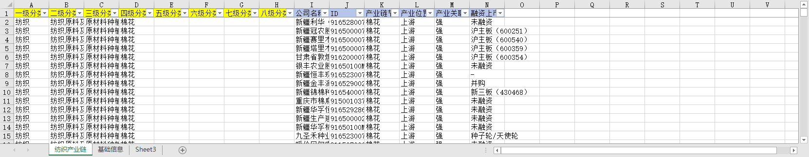 一级分类 二级分类 三级分类 四级分类 五级分类 六级分类 七级分类 八级分类 公司名称 ID 产业链节点 产业位置 产业关联性 融资上市