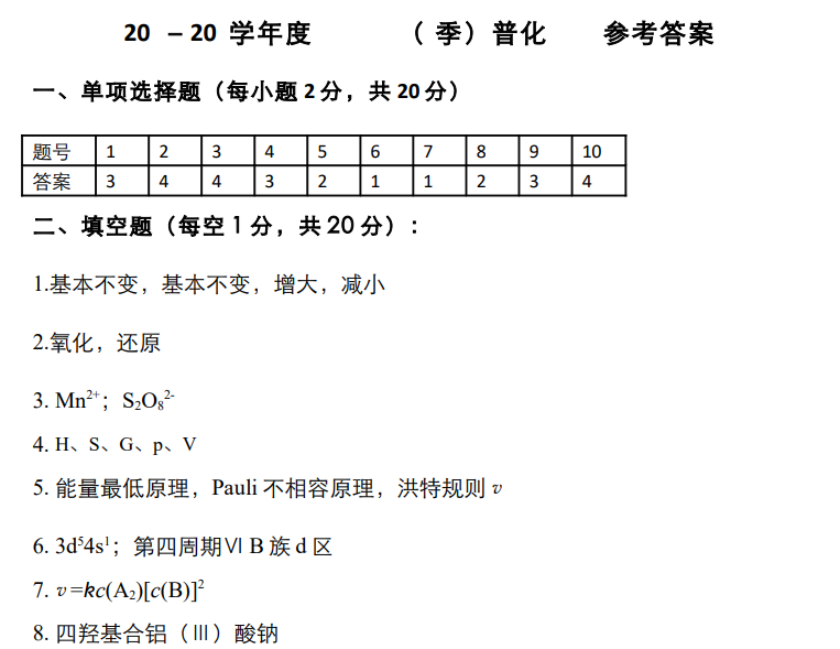 01桂工桂林理工大学普通化学及答案一套(即一年的).pdf