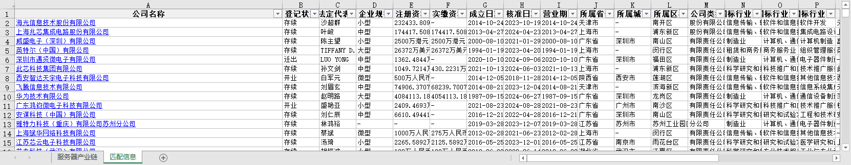 计算机硬件IT服务器产业链全国上中下游企业信息1969-2024节点关联性参保人数联系电话法定代表人所属行业省份城市区县等