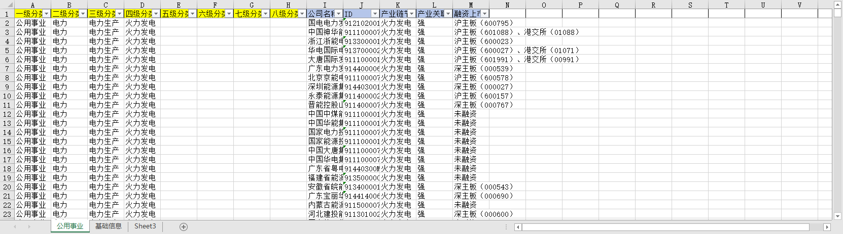 一级分类 二级分类 三级分类 四级分类 五级分类 六级分类 七级分类 八级分类 公司名称 ID 产业链节点 产业位置 产业关联性 融资上市