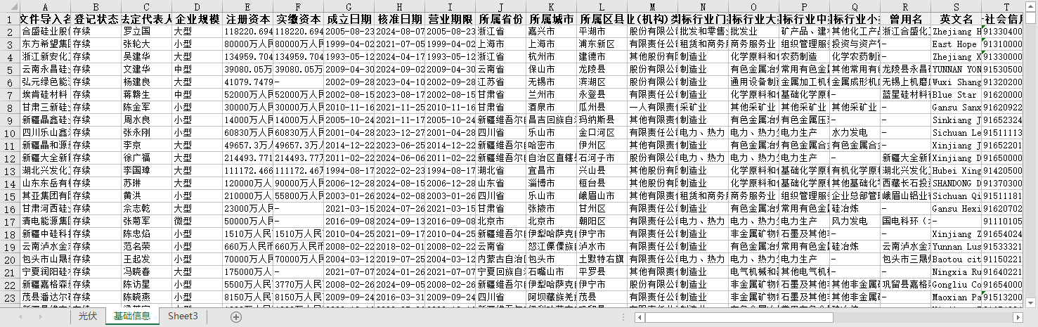 光伏生产设备光伏产业链全国上中下游企业信息1949-2024节点关联性参保人数联系电话法定代表人所属行业省份城市区县等