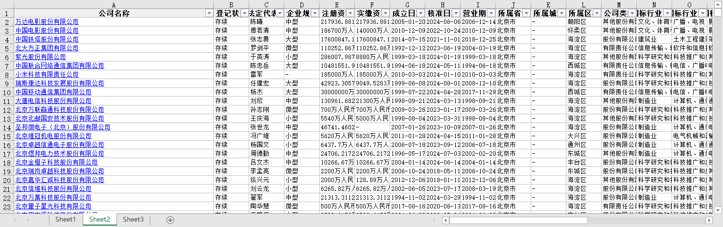 原文件导入名称 登记状态 法定代表人 企业规模 注册资本 实缴资本 成立日期 核准日期 营业期限 所属省份 所属城市 所属区县 企业(机构)类型 国标行业门类 国标行业大类 国标行业中类 国标行业小类 曾用名 英文名 统一社会信用代码 纳税人识别号 注册号 组织机构代码 参保人数 参保人数所属年报 电话 更多电话 企业地址 通信地址 官网 邮箱 更多邮箱 经营范围 登记机关 纳税人资质 企业简介 最新年报年份 等等