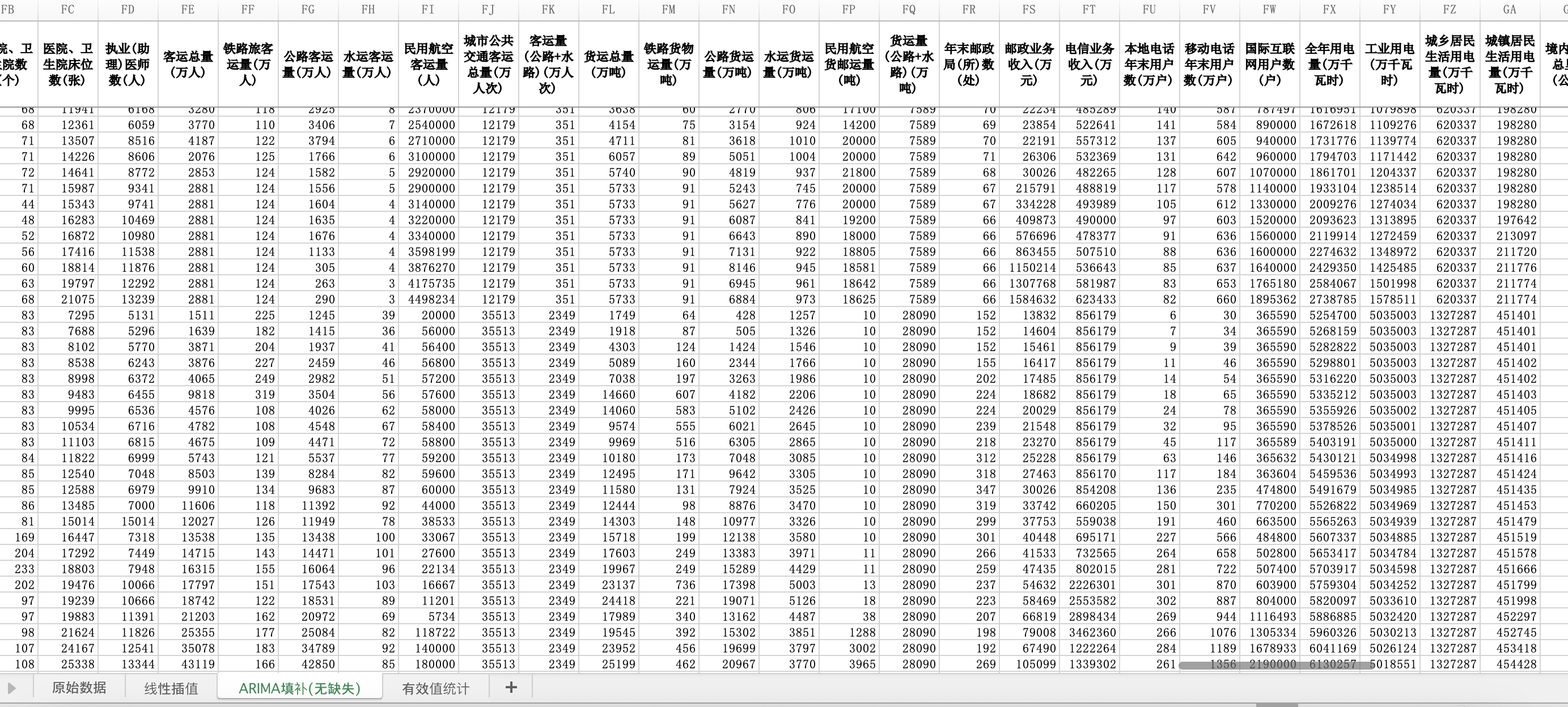 数据格式:Excel数据文件包含原始数据(由于多年度指标不同存在缺失值)、线性插值、ARIMA填补(无缺失)三个版本,提供您参考使用。其中,ARIMA填补无缺失值。