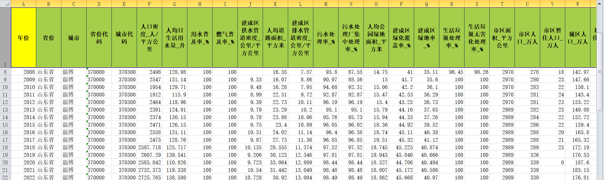 本数据为2024-2003年中国城乡建设统计年鉴面板数据,即为2023年-2002年城乡建设各个地级市的统计数据。统计了685个城市和地区,422多个指标。数据来源于《中国城乡建设统计年鉴》、《中国城市统计年鉴》中有关城乡建设的部分数据,数据指标具有400多个,几乎覆盖了《中国城乡建设统计年鉴》全部,中国城乡建设统计年鉴统计了北京、通州、天津等685个城市和地区