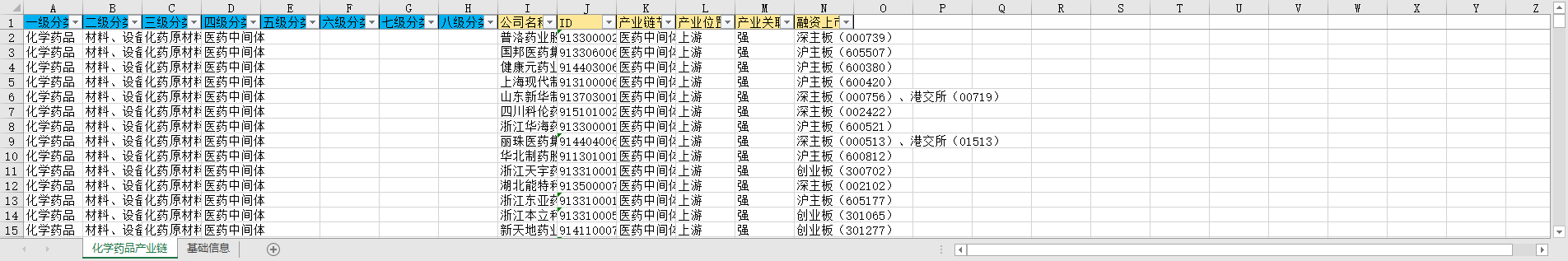 一级分类 二级分类 三级分类 四级分类 五级分类 六级分类 七级分类 八级分类 公司名称 ID 产业链节点 产业位置 产业关联性 融资上市