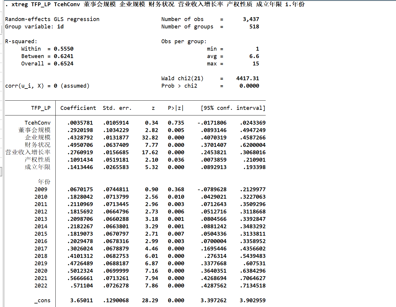 x:数实产业技术融合;y;企业全要素生产率,加入时间控制效应之后不显著zen'me