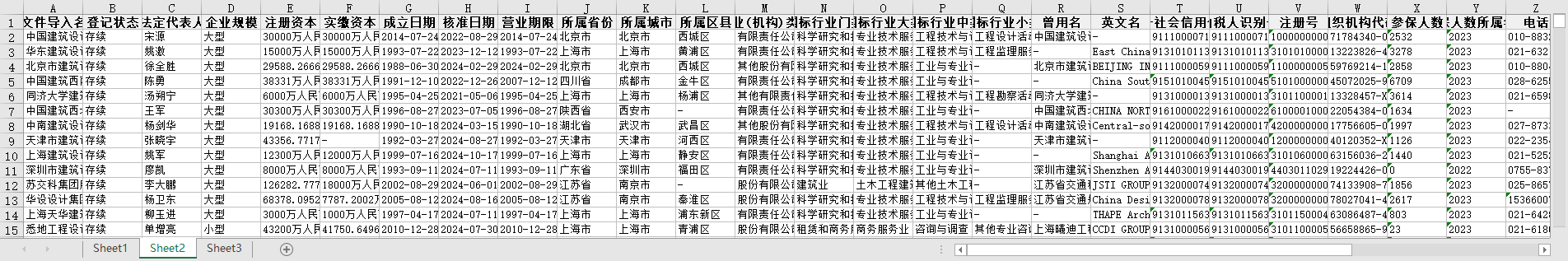 原文件导入名称 登记状态 法定代表人 企业规模 注册资本 实缴资本 成立日期 核准日期 营业期限 所属省份 所属城市 所属区县 企业(机构)类型 国标行业门类 国标行业大类 国标行业中类 国标行业小类 曾用名 英文名 统一社会信用代码 纳税人识别号 注册号 组织机构代码 参保人数 参保人数所属年报 电话 更多电话 企业地址 通信地址 官网 邮箱 更多邮箱 经营范围 登记机关 纳税人资质 企业简介 最新年报年份 等等