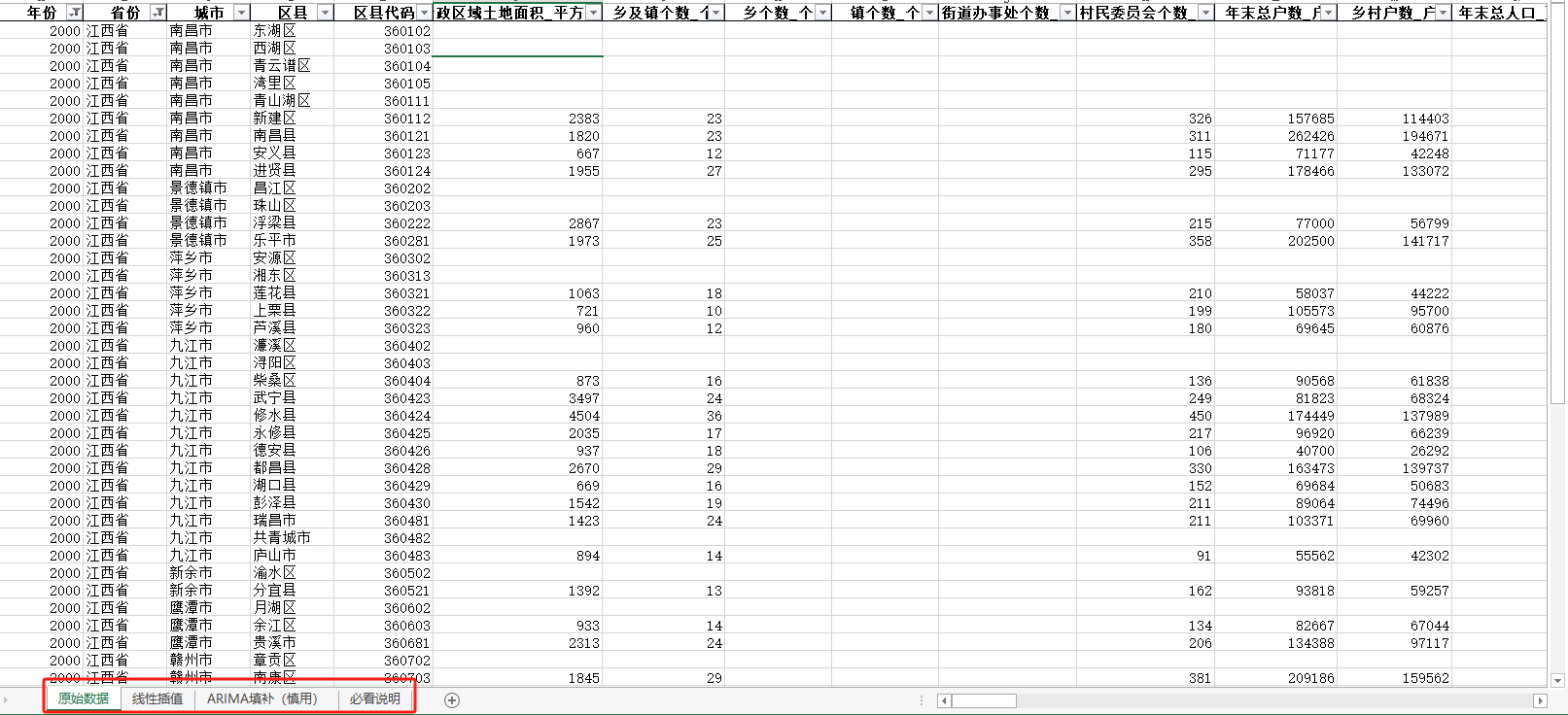 中国区县面板统计数据库(包含三个页签:原始数据、线性插值、ARIMA填补三个页签),收录了全国2700多个县域单位的基本情况、综合经济、农业、工业、教育、卫生、社会保障等方面的资料。