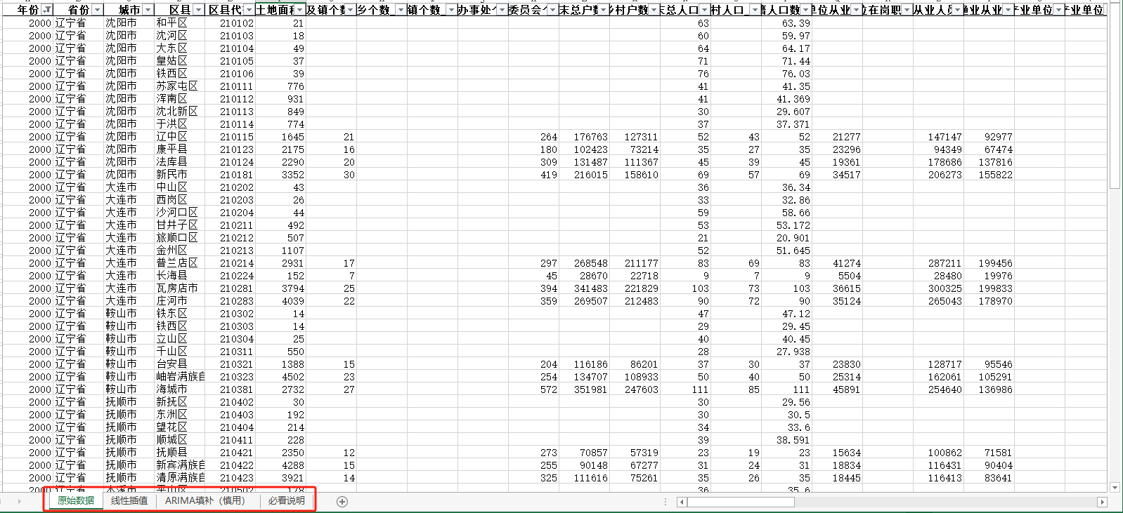 中国区县面板统计数据库(包含三个页签:原始数据、线性插值、ARIMA填补三个页签),收录了全国2700多个县域单位的基本情况、综合经济、农业、工业、教育、卫生、社会保障等方面的资料。