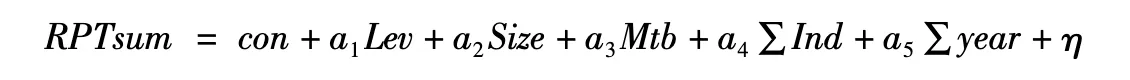 通过该回归模型得到的预测值为正常的关联交易 NRPT,残差为异常的关联交易AbRPT。