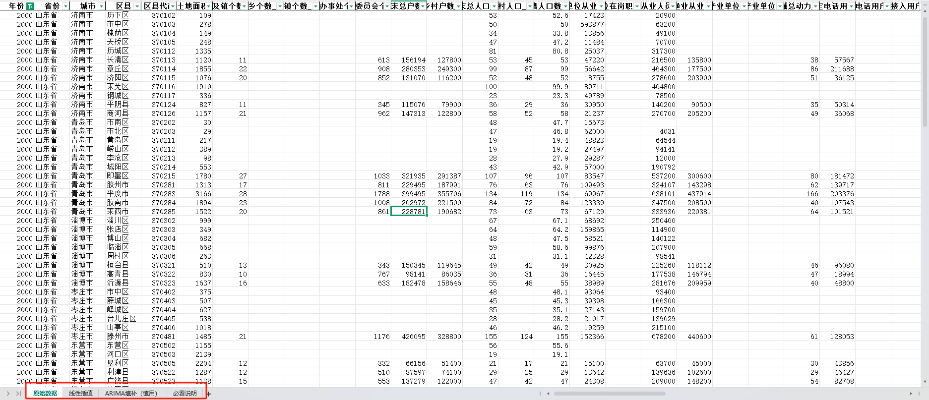 中国区县面板统计数据库(包含三个页签:原始数据、线性插值、ARIMA填补三个页签),收录了全国2700多个县域单位的基本情况、综合经济、农业、工业、教育、卫生、社会保障等方面的资料。