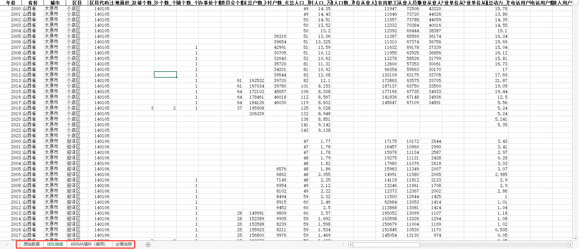 中国区县面板统计数据库(包含三个页签:原始数据、线性插值、ARIMA填补三个页签),收录了全国2700多个县域单位的基本情况、综合经济、农业、工业、教育、卫生、社会保障等方面的资料。
