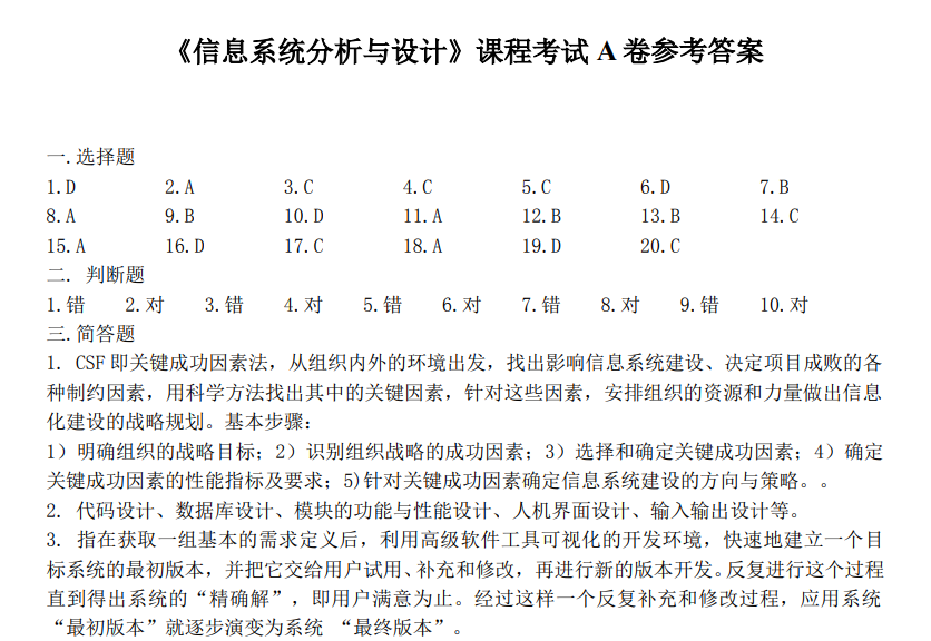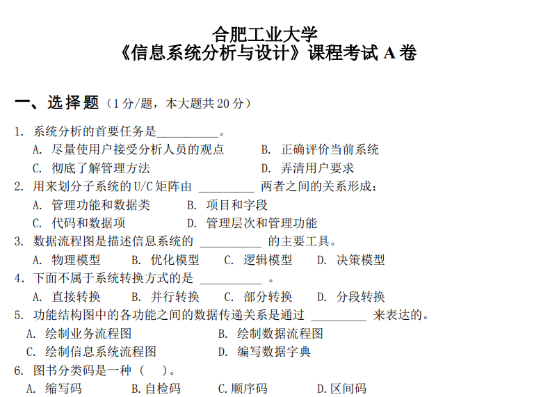 01合工大合肥工业大学信息系统分析与设计及答案一套(即一年的).pdf