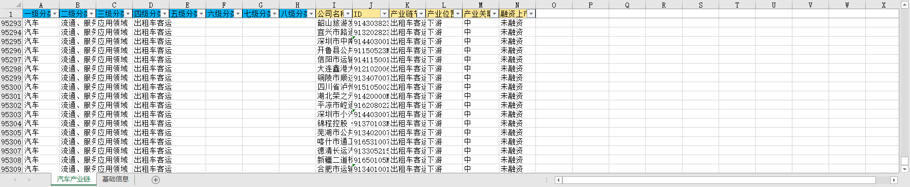 一级分类 二级分类 三级分类 四级分类 五级分类 六级分类 七级分类 八级分类 公司名称 ID 产业链节点 产业位置 产业关联性 融资上市