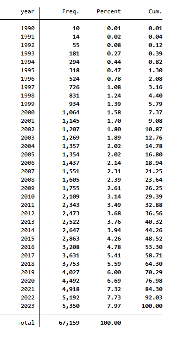 选择A股上市公司2000-2023年数据做为初始数据,并经过以下处理: