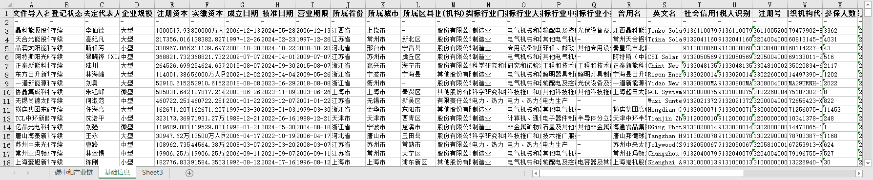 碳中和产业链全国上中下游企业信息1949-2024节点关联性参保人数联系电话法定代表人所属行业省份城市区县等