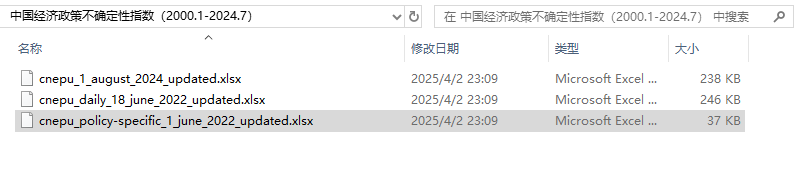 数据说明:包括总指数、财政政策、货币政策、贸易政策、汇率不确定指数