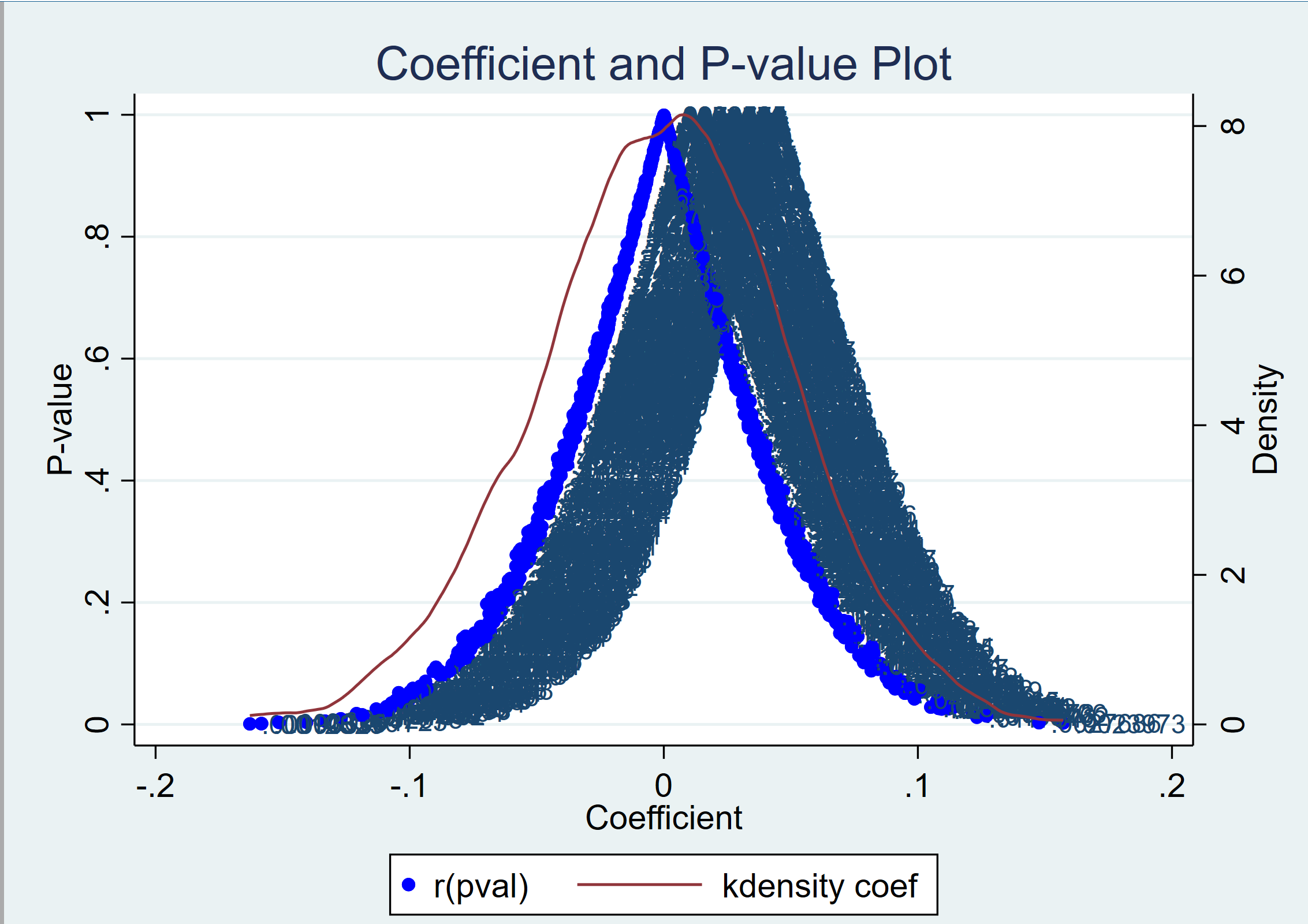 安慰剂检验p值的分布图这样子怎么办,需要减少随机事件次数吗