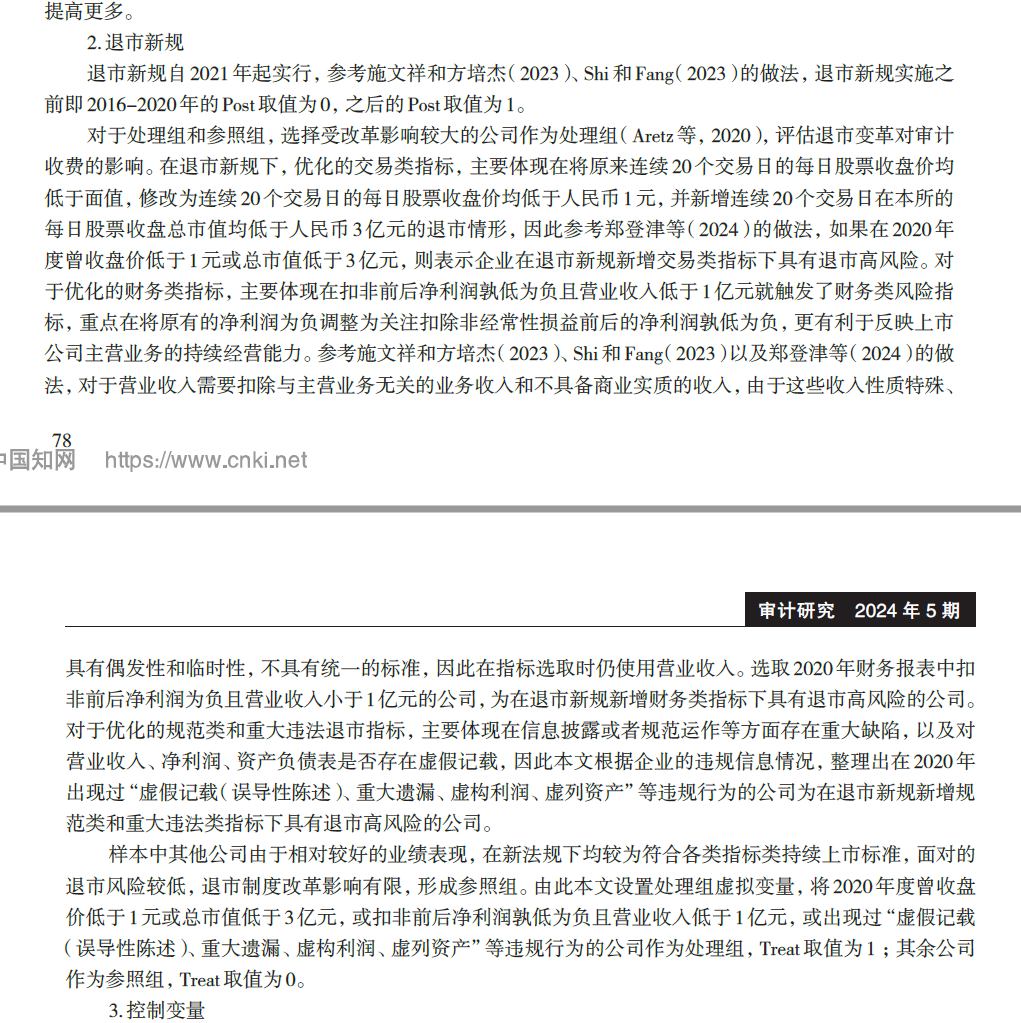 参考文献:[1]王跃堂,马靓,沈小燕.退市新规提高了审计收费吗?[J].审计研究,2024,(05):75-88.