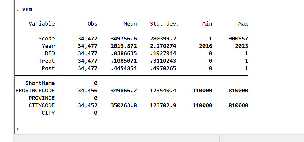 数据定义:DID:等于Treat*Post,其中