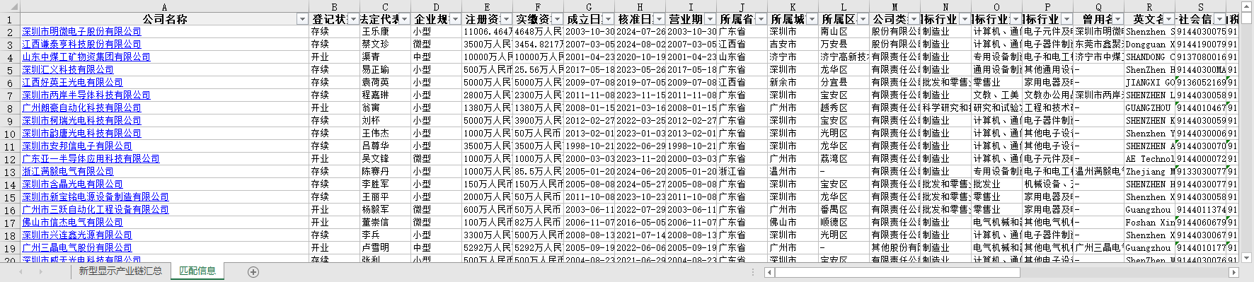 新型显示产业链全国上中下游企业信息1949-2024节点关联性参保人数联系电话法定代表人所属行业省份城市区县等