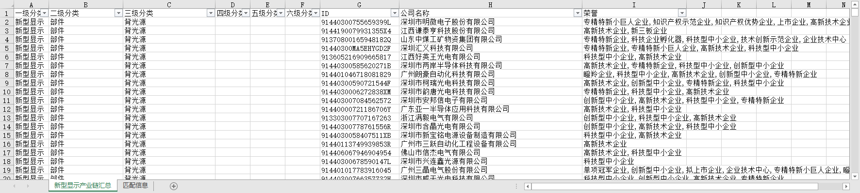 另外还有一个高新技术企业、科技型中小企业、创新型中小企业、独角兽瞪羚雏鹰隐形冠军专精特新小巨人等荣誉、企业资质的匹配信息excel数据文件