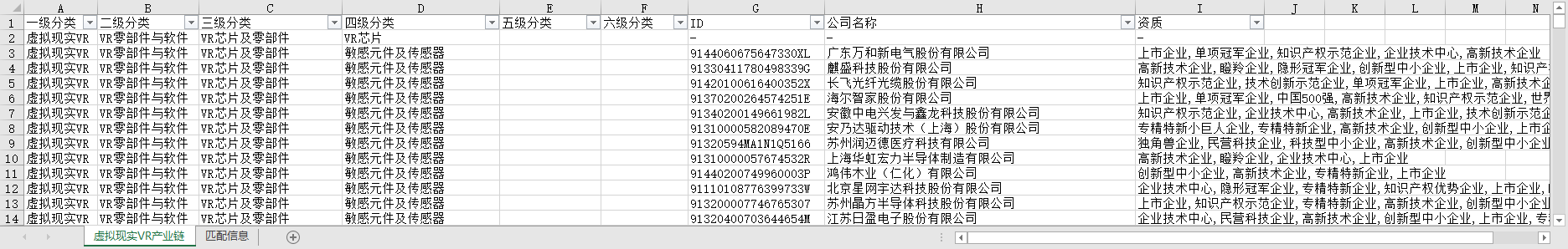 另外还有一个高新技术企业、科技型中小企业、创新型中小企业、独角兽瞪羚雏鹰隐形冠军专精特新小巨人等荣誉、企业资质的匹配信息excel数据文件