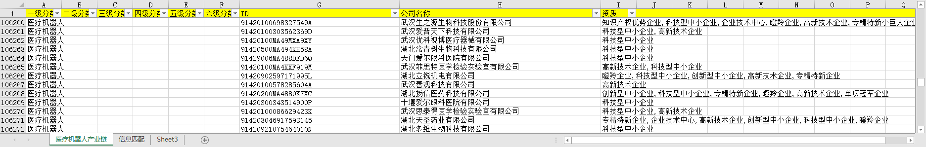 另外还有一个高新技术企业、科技型中小企业、创新型中小企业、独角兽瞪羚雏鹰隐形冠军专精特新小巨人等荣誉、企业资质的匹配信息excel数据文件
