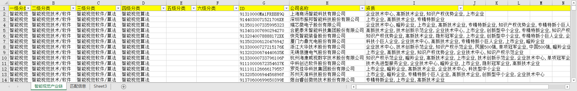 另外还有一个高新技术企业、科技型中小企业、创新型中小企业、独角兽瞪羚雏鹰隐形冠军专精特新小巨人等荣誉、企业资质的匹配信息excel数据文件