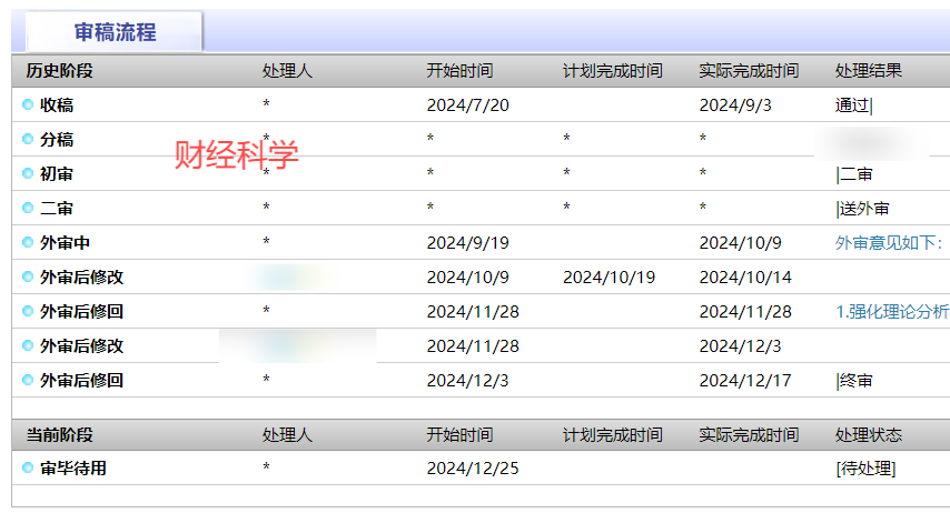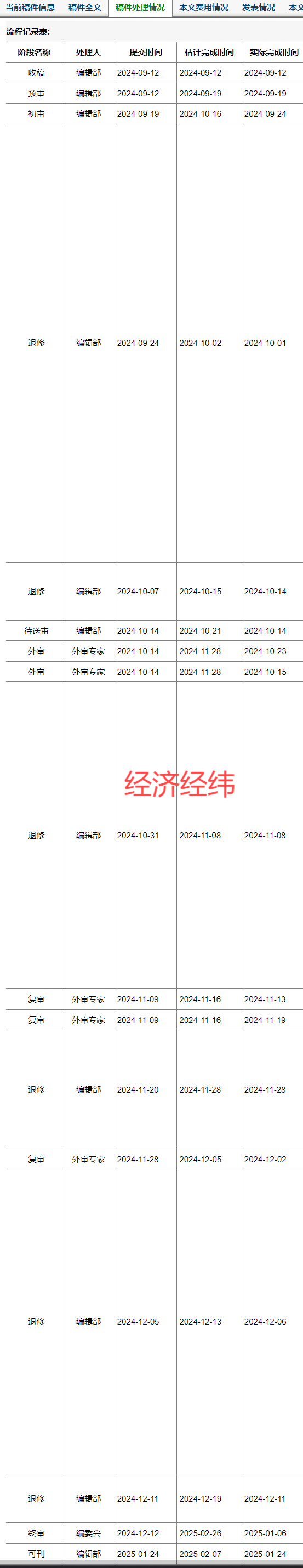 这位博士研究生分享的经验确实很宝贵,从他投稿的《资源科学》、《财经科学》、《软科学》和《经济经纬》等期刊来看,每一篇论文的录用流程都经历了初审、外审(一轮或多轮)以及终审的过程。虽然具体的时间点因不同期刊和稿件的情况而异,但整体上可以看出,从投稿到最终录用需要数月时间。