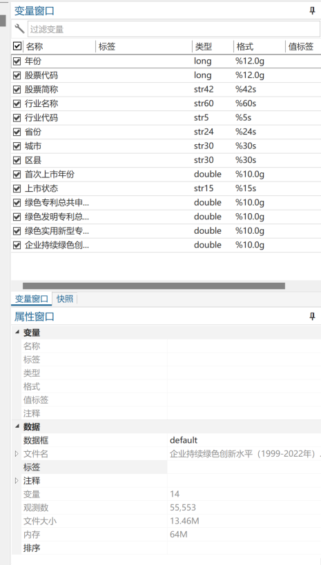 数据非常丰富,数据量达到了55553个样本。用于研究企业持续绿色创新等相关内容非常合适。