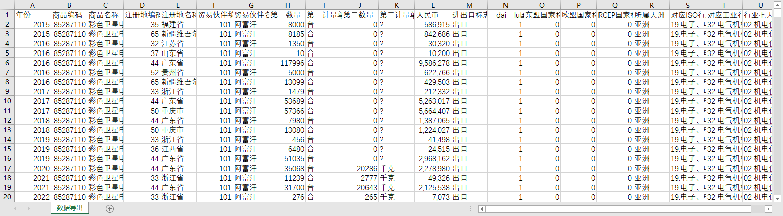 数据范围:各省份(注册地名称),分别明细到 全球世界各国(贸易伙伴名称) 的贸易数据,明细到HS分类的8位编码