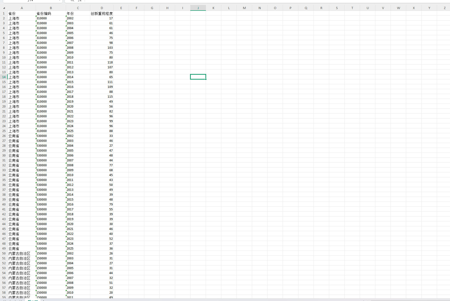 创新水平是一个地区经济社会长期高质量发展的重要标志。引入了地方政府对创新的重视程度,考察其对短期经济增长竞争与协同程度的影响。我们统计了地方政府工作报告中与创新相关词汇的词频,作为地方政府对其重视程度的度量。