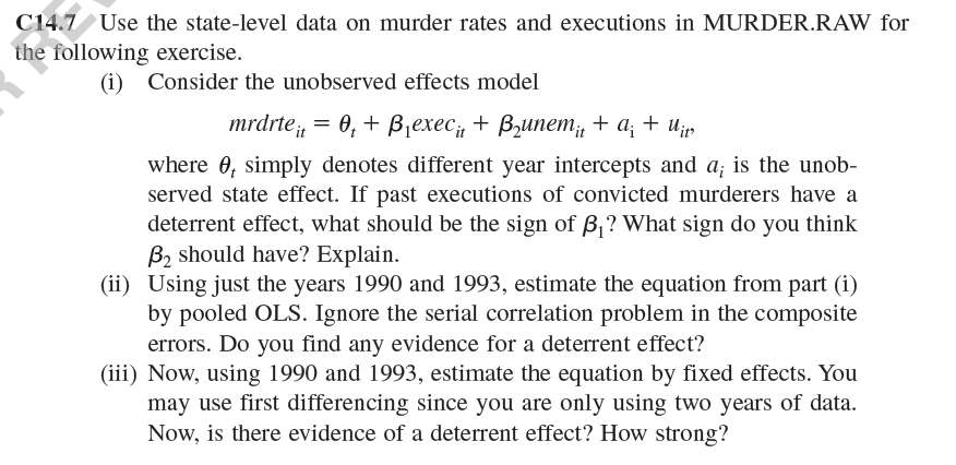 伍德里奇面板数据的一道题,怎么用stata命令呀