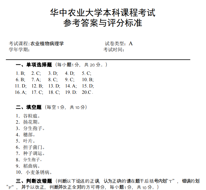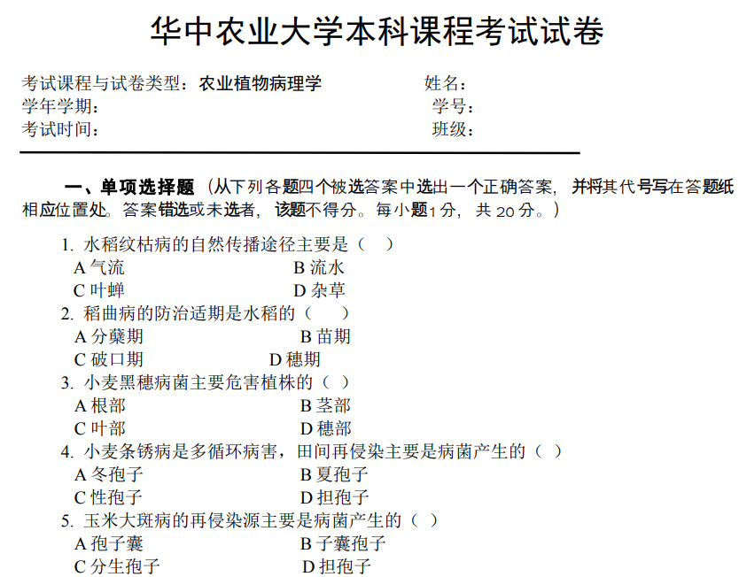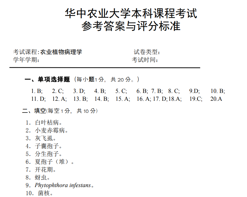 01华农华中农业大学农业植物病理学及答案一套(即一年的).pdf