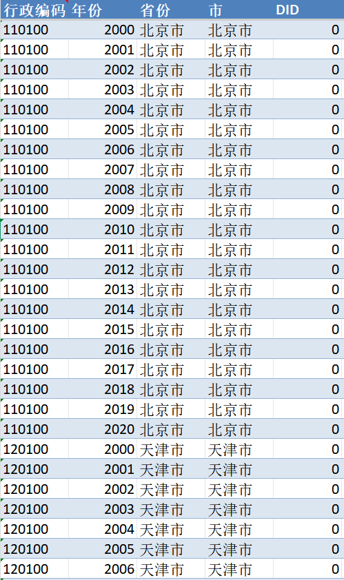 研究生态补偿奖惩政策的核心原因在于其在中国式现代化进程中具有双重重要性:一是通过奖惩机制激发地方政府环境治理积极性,解决传统环境治理中因外部性导致的激励不足问题;二是通过政策协同效应推动绿色全要素生产率提升,实现经济高质量发展与生态环境保护的双赢。该政策不仅回应了国家生态文明建设的战略需求,还填补了现有研究中关于横向生态补偿对政府行为影响及绿色效率提升机制的空白,为优化环境治理体系、推动区域协同发展提供了理论依据和实践路径。我们参照黄寿峰等[2024]的文章,构建了具体到地级市的生态补偿奖惩政策DID数据,当该市所在省份实施了生态补偿奖惩政策之后DID取值为1,反之为0,因为各省推出政策的时间不不同,因此本数据为多时点DID数据。