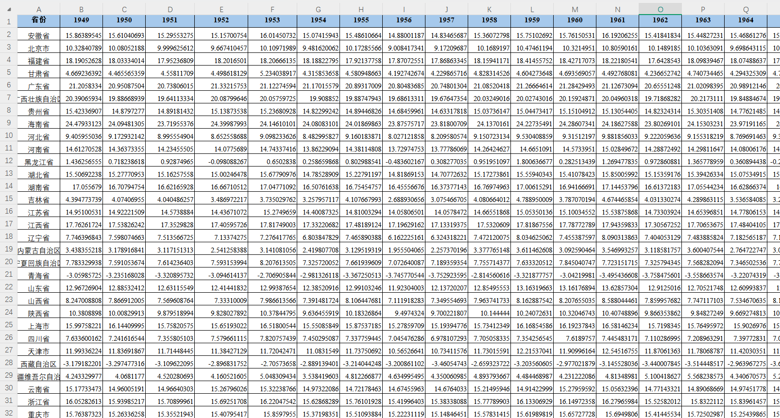 省份、城市、城市代码、降水量(mm)