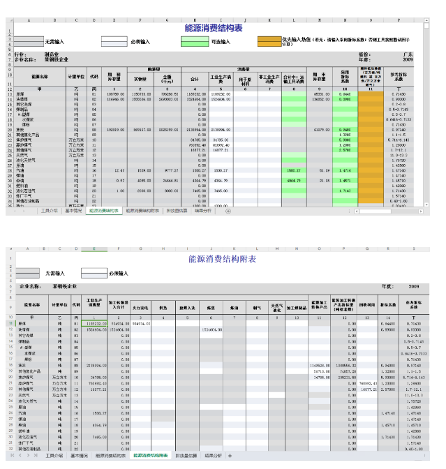 1、中国能源消耗碳排放计算工具excel能源消费结构表排放量估算结果分析