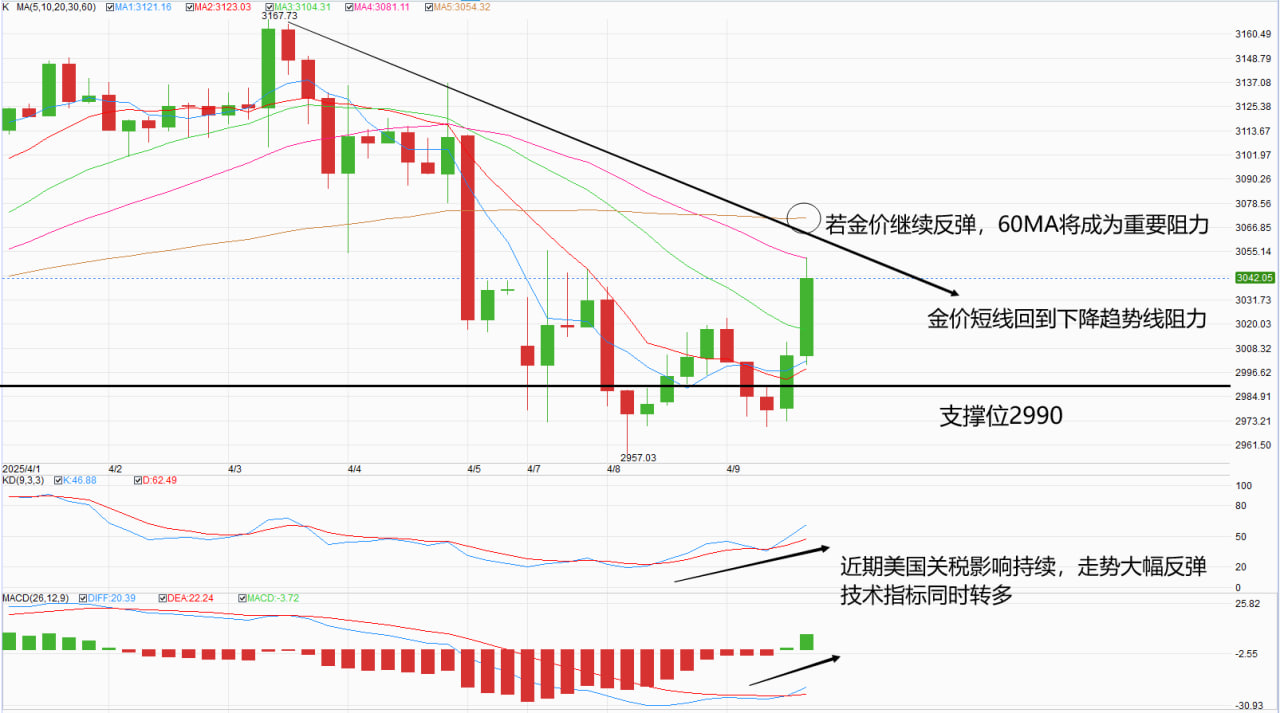 解说:现货黄金:激进者偏多操作,多单参考价位3030-3040,止损位2990,获利目标3500