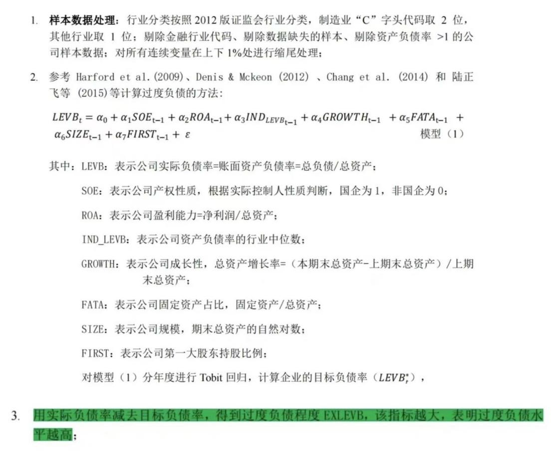 参考 Harford et al.(2009)、Denis & Mckeon (2012) 、Chang et al. (2014) 和陆正飞等(2015)等计算过度负债的方法。