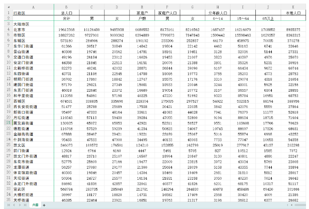 [color=rgba(0, 0, 0, 0.9)]2010年第六次全国人口普查分乡、镇、街道资料是EXCEL版本的,整理在一张大表上,共有4万多个乡镇街道数据