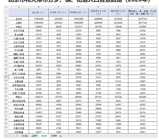 现有很多整理的都是PDF版,使用非常不方面,因此,花了很大的精力整理和搜集了五普、六普和七普的Excel版本或网页版,全部可复制!