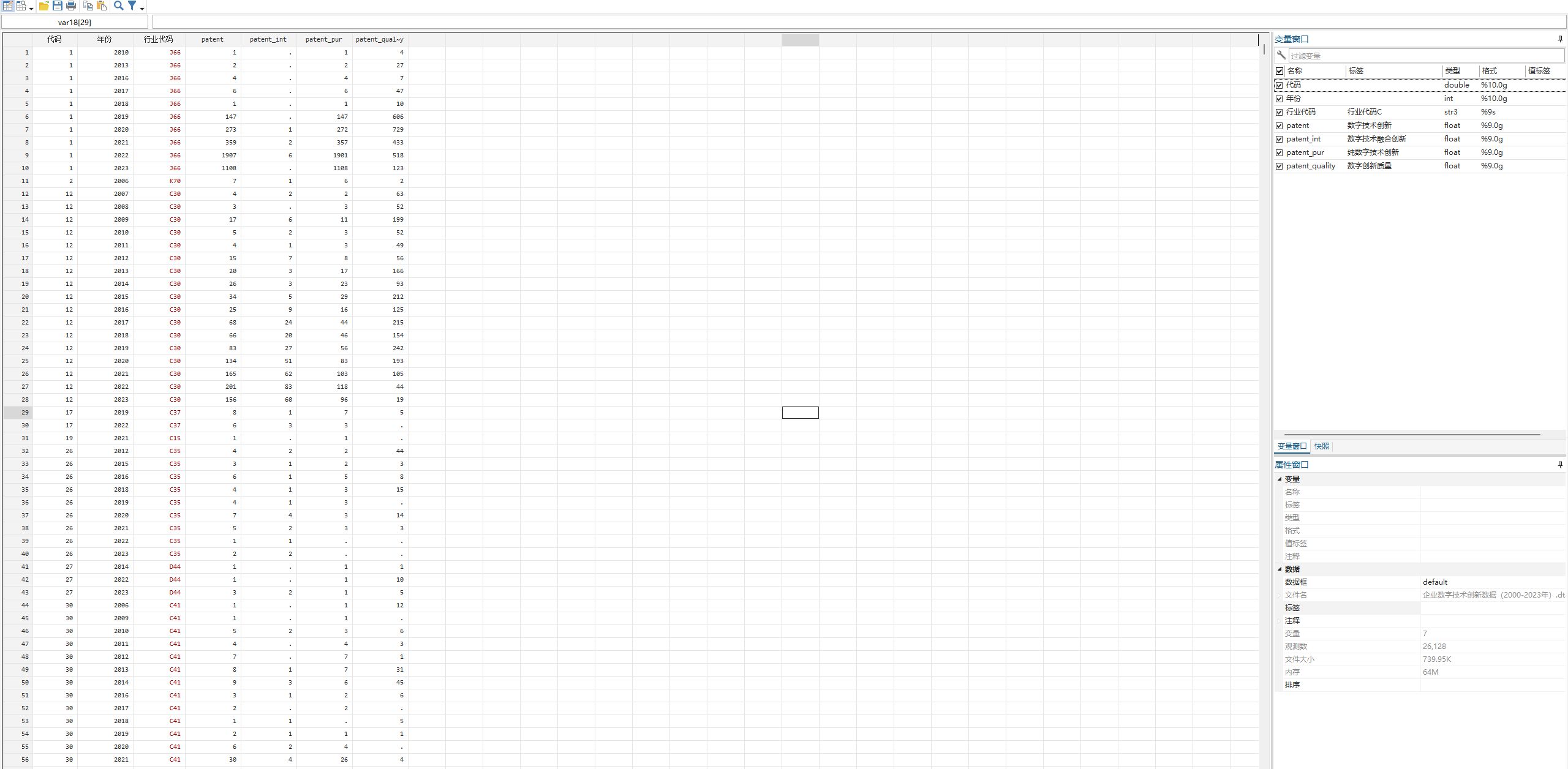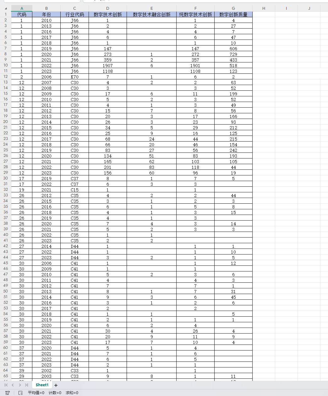 代码、年份、行业代码、数字技术创新、数字技术融合创新、纯数字技术创新、数字创新质量
